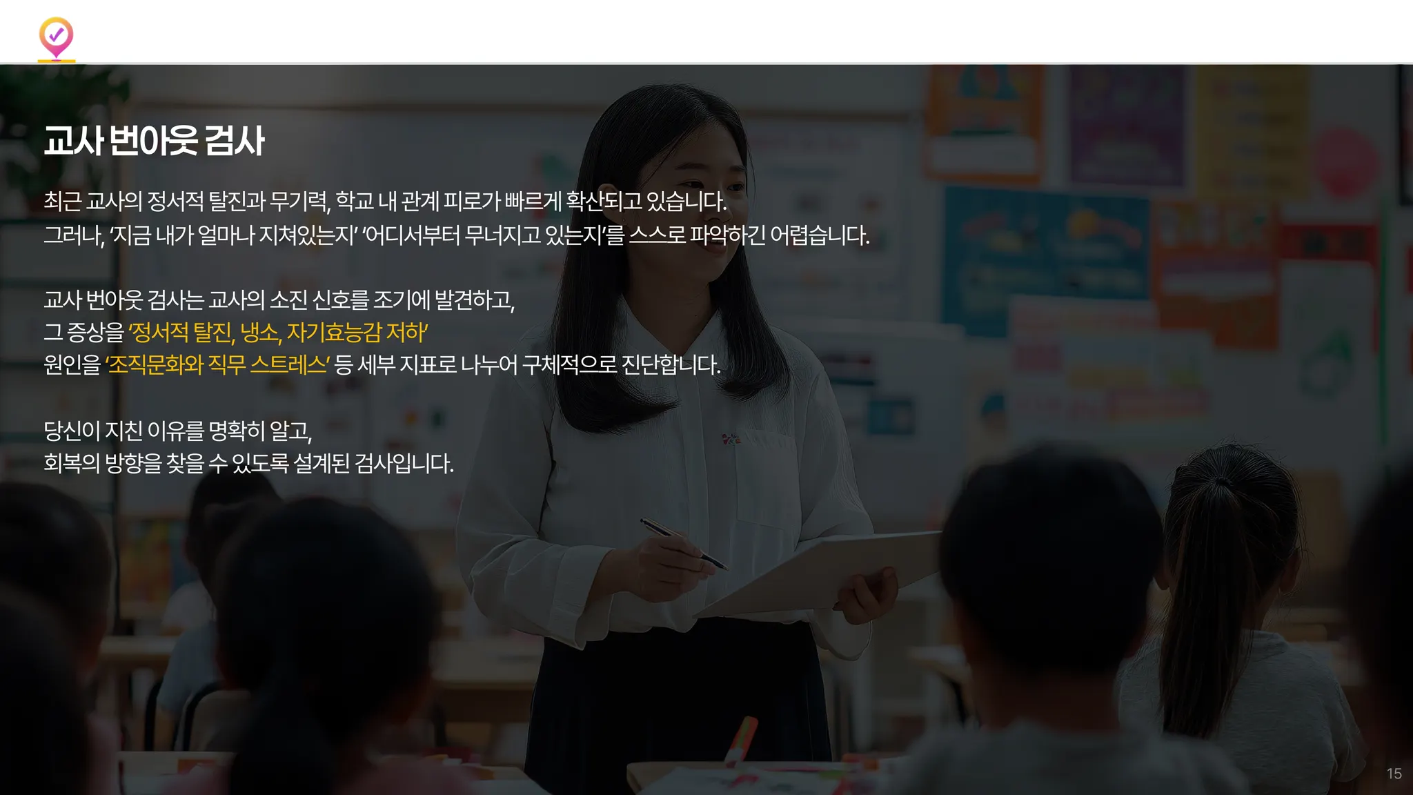 자문으로 개발된 과학적이고 신뢰도 높은 학생용 표준화 심리 검사와 교사 번아웃 검사에 대해 자세히 살펴보세요!