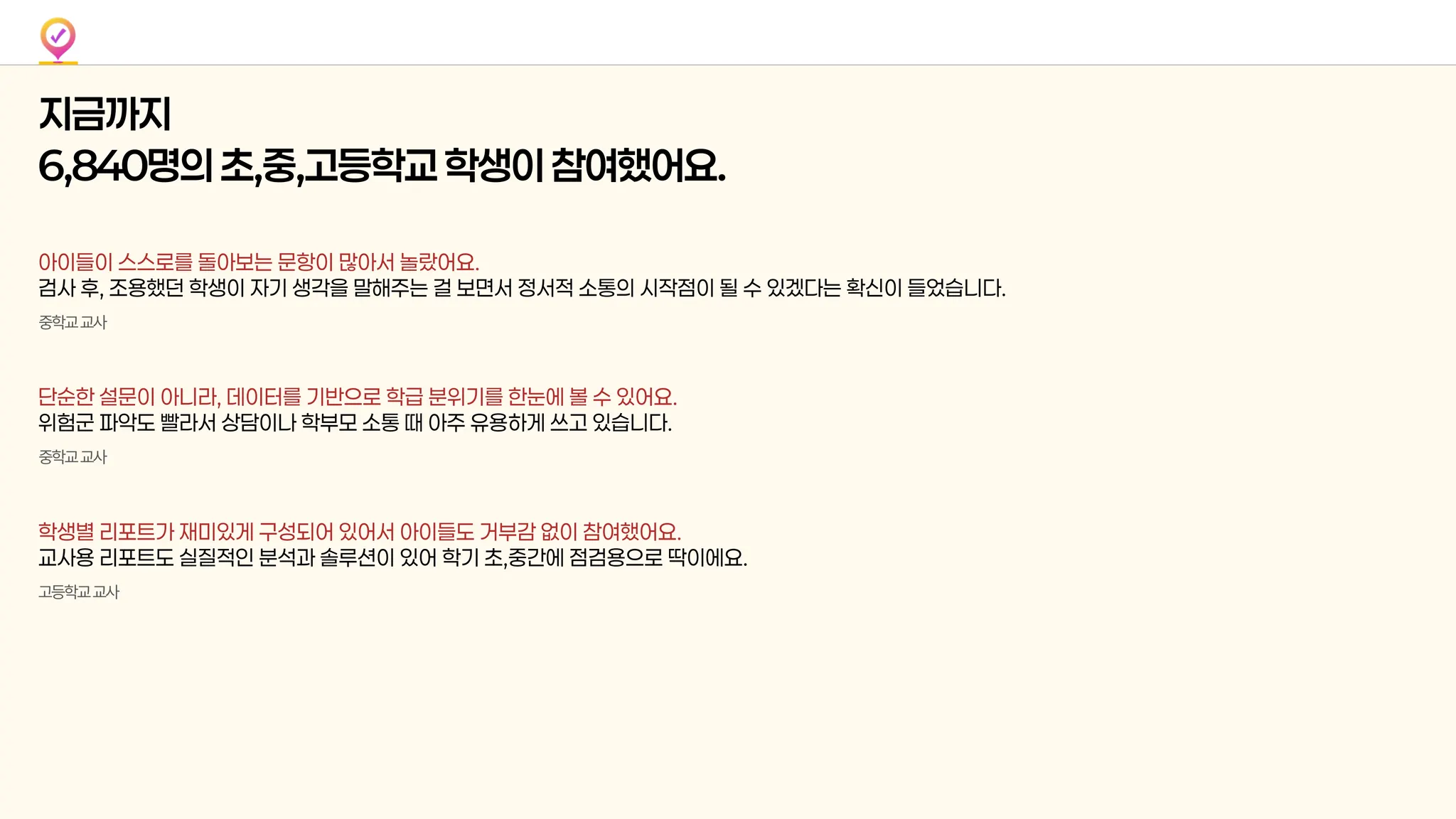 파일럿 검사는 교사 1인에 한해 무료로 제공되오니, 부담없이 신청 부탁드립니다